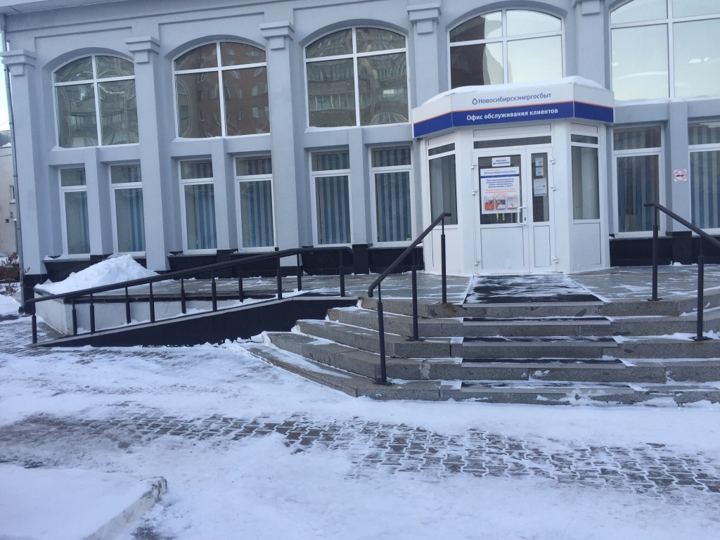 У главного входа в здание со стороны ул. Некрасова размещена информационная табличка с указанием номера телефона для вызова сопровождающего лица.